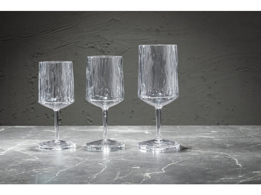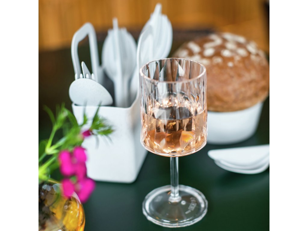 Pohár je vyrobený z nerozbitného high-tech plastového materiálu v atraktívnom fazetovom dizajne na biele víno, Lillet alebo koktaily. Spĺňa zákonné požiadavky pre všetky oblasti, kde je sklo zakázané. Izoluje štyrikrát lepšie ako bežné sklo. Odolný voči nárazom, recyklovateľný, vhodný do umývačky riadu do max. 70 °C, nové poháre prvýkrát opláchnite pri teplote nad 80 °C, pH neutrálny umývací prostriedok a špeciálny oplachovací prostriedok odporúčaný pre plastové poháre.Dodatočné parametre
