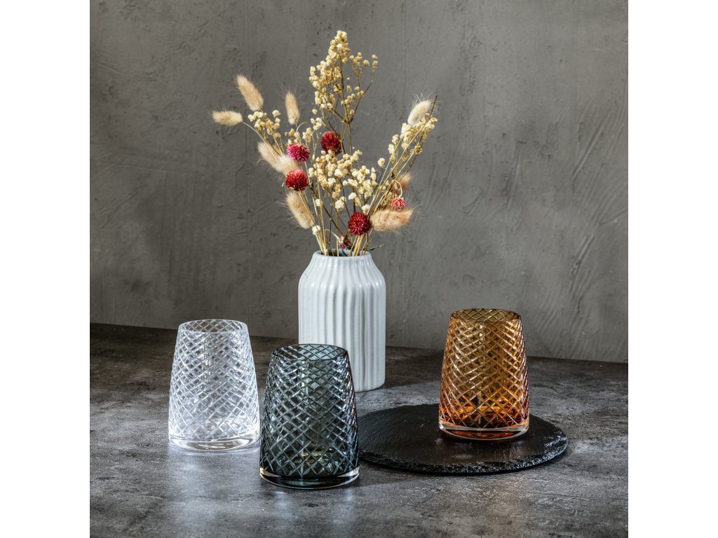 Ručne brúsené poháre Divida môžete použiť ako poháre na vodu, ale aj ako dekoračné svietniky. Materiál: farbené krištáľové sklo. Vhodné do umývačky riadu!Dodatočné parametre