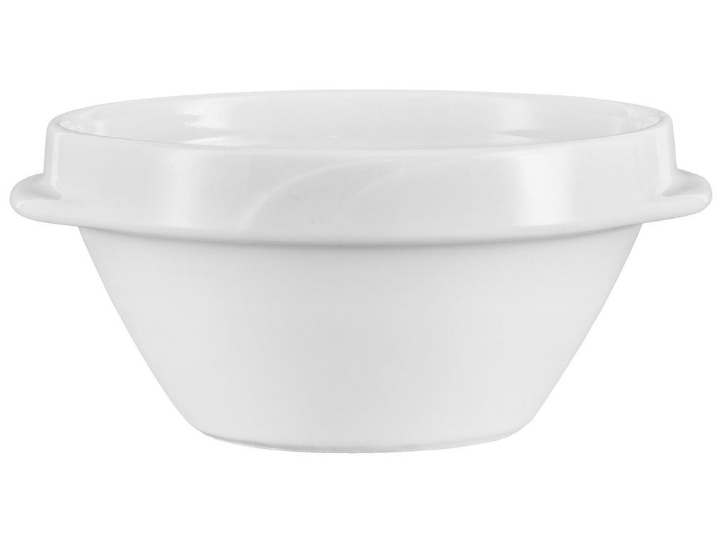 Biela porcelánová miska na polievku. S elegantným reliéfom. Mimoriadne robustná. Vhodná do umývačky riadu a mikrovlnnej rúry.Dodatočné parametre