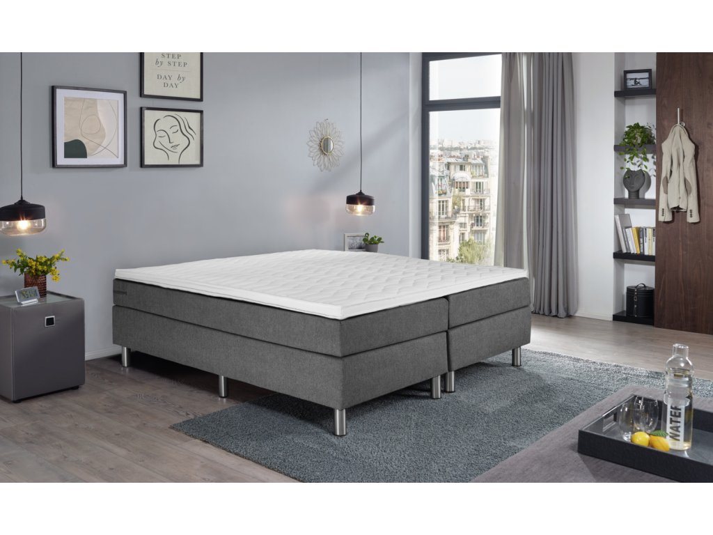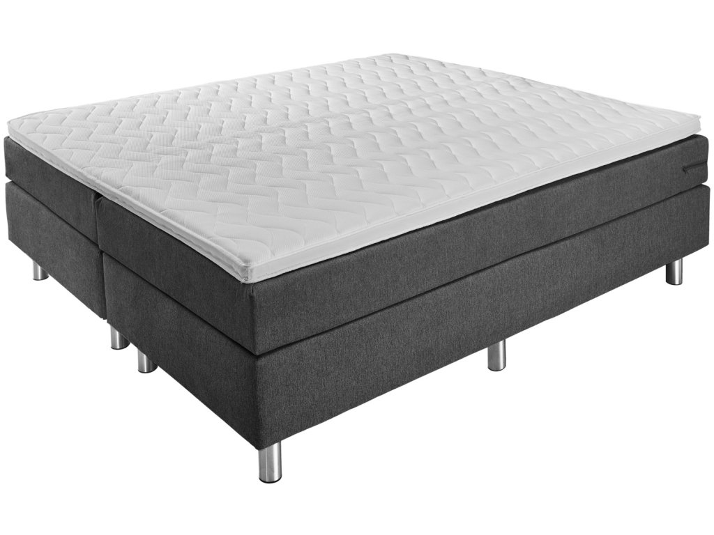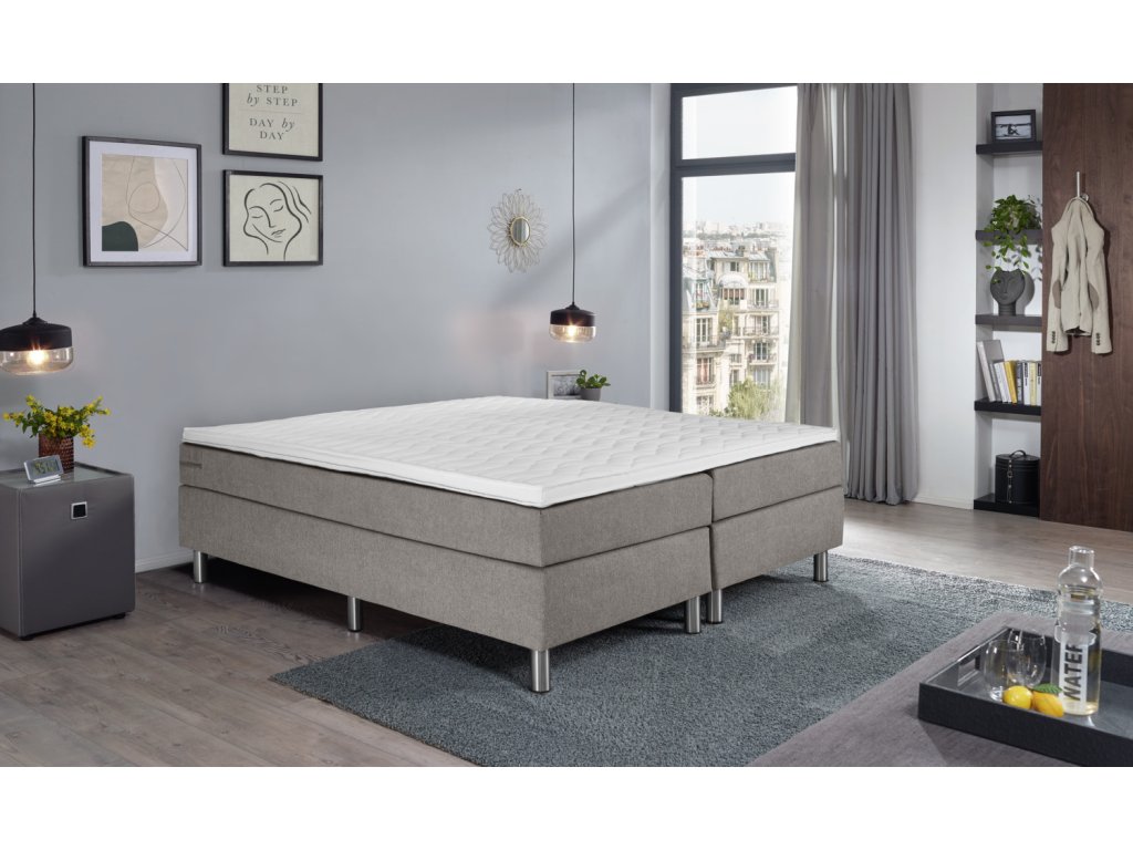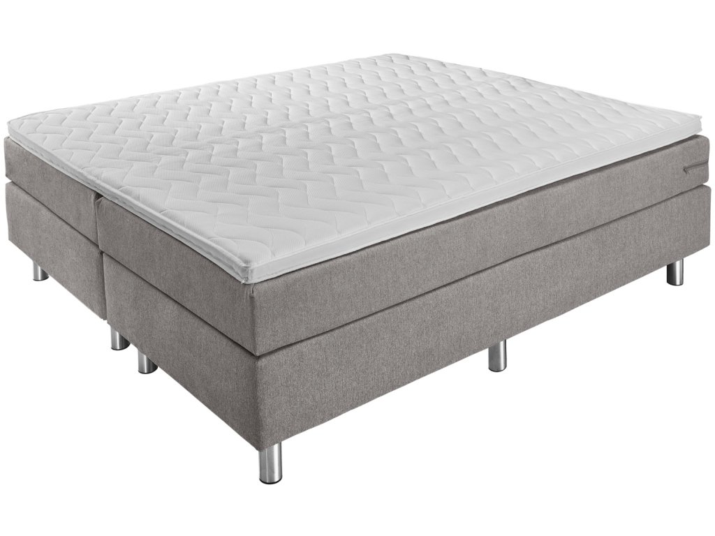 Box spring posteľ v praktickej kompletnej súprave. Box s pružinovým jadrom Bonell. Pružiny Bonell s hrúbkou 2,2 mm. Čalúnený rám. Vrchná časť zo studenej peny pre dobrý komfort spánku. Bez chrbtovej časti. Nehrdzavejúce kovové nožičky v striebornej farbe. Vstupná výška: 63 cm. Výška nožičiek 16 cm + box 20 cm + matrac 21 cm + topper 6 cm spolu: 63 cm. S poťahom z čalúnnickej látky. K dispozícii ako jednolôžko alebo manželská posteľ. Dodávka vrátane spojovacích prvkov. Nožičky postele sa pri dodaní nachádzajú v krabici.Dodatočné parametre