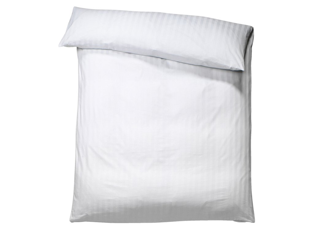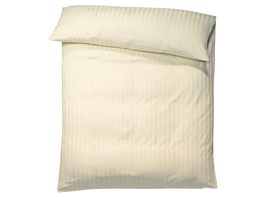 100 % bavlna. Hmotnosť približne 120 g/m². Klasické posteľné prádlo s klasickým vzorom pruhov (šírka 20 mm). S hotelovým uzáverom. Hustota vlákien (TC): 207 vlákien na palec Tkanie: saténDodatočné parametre