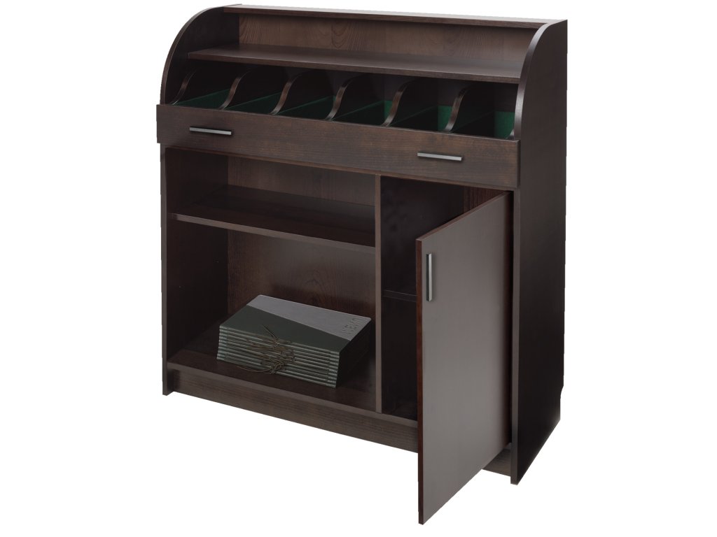 Klasická príborník z dosiek na báze dreva s melamínovým náterom. Horná polica. Jedna veľká zásuvka so šiestimi priehradkami vystlanými filcom. Jedna spodná priehradka s dvierkami a výškovo nastaviteľnou policou a jedna otvorená bočná priehradka s dvoma policami. Možno umiestniť kdekoľvek a použiť ako priehradku na rozdelenie miestnosti. Dodáva sa zmontovaný.Dodatočné parametre