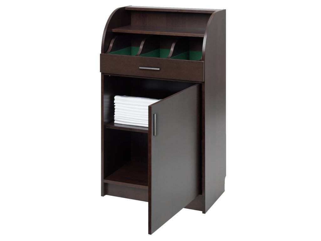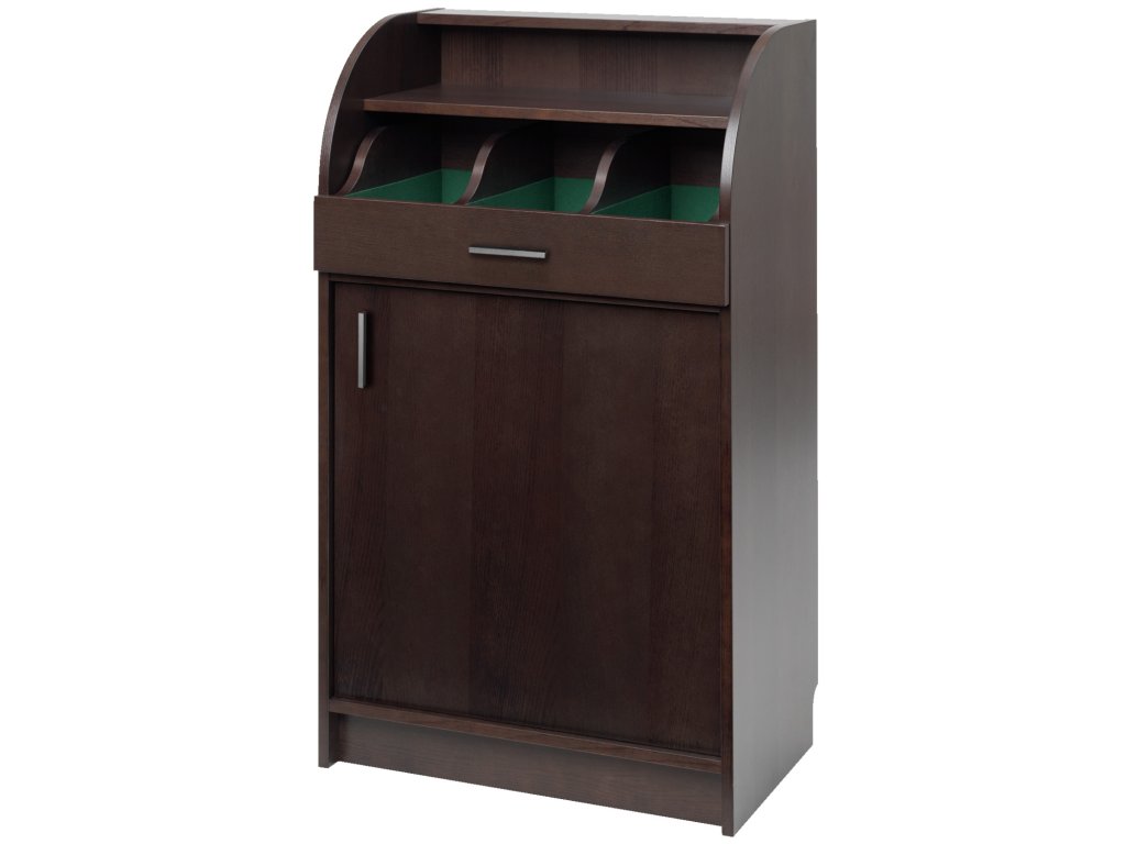 Klasická príborníková skrinka z dosiek na báze dreva s melamínovým náterom. Horná polica. Jedna veľká zásuvka s tromi priehradkami vystlanými filcom. Jedna spodná priehradka s dvierkami a výškovo nastaviteľnou policou. Možno umiestniť kdekoľvek a použiť ako deliacu priečku v miestnosti. Vhodný len na použitie v interiéri. Dodáva sa zmontovaný.Dodatočné parametre