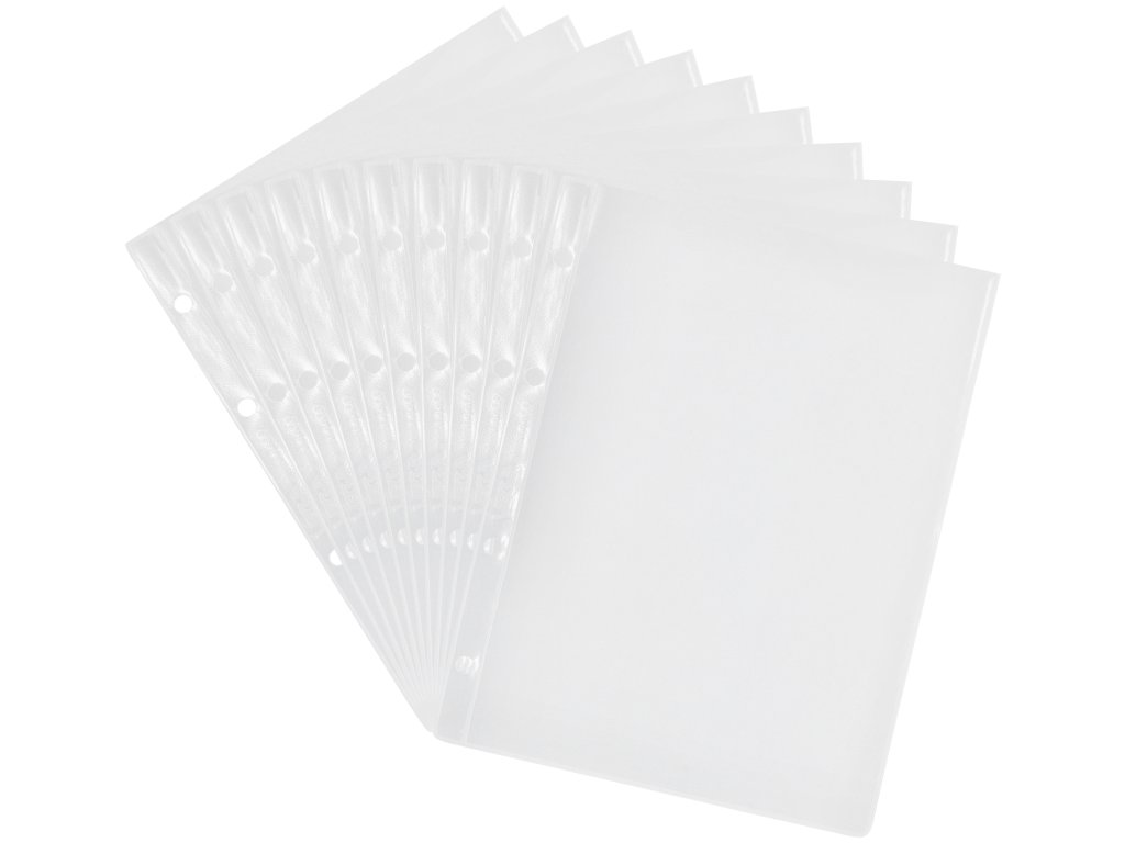 Priehľadné obaly na jedálne lístky so štyrmi otvormi: vhodné pre všetky jedálne lístky so štyrmi vnútornými skrutkami na knihy. Hrúbka 0,2 mm. K dispozícii v dvoch veľkostiach. Otvor v hornej časti, na vkladanie vložiek. Desať kusov v balení.Dodatočné parametre