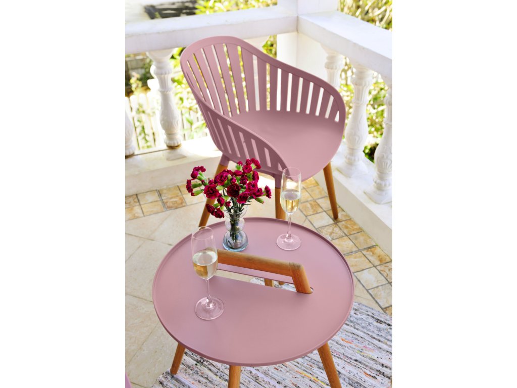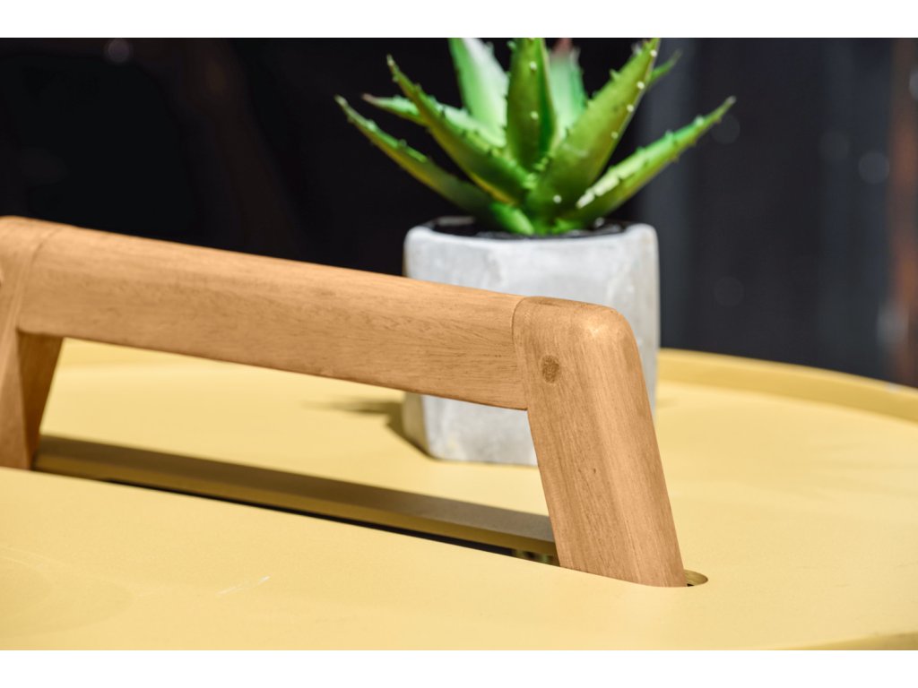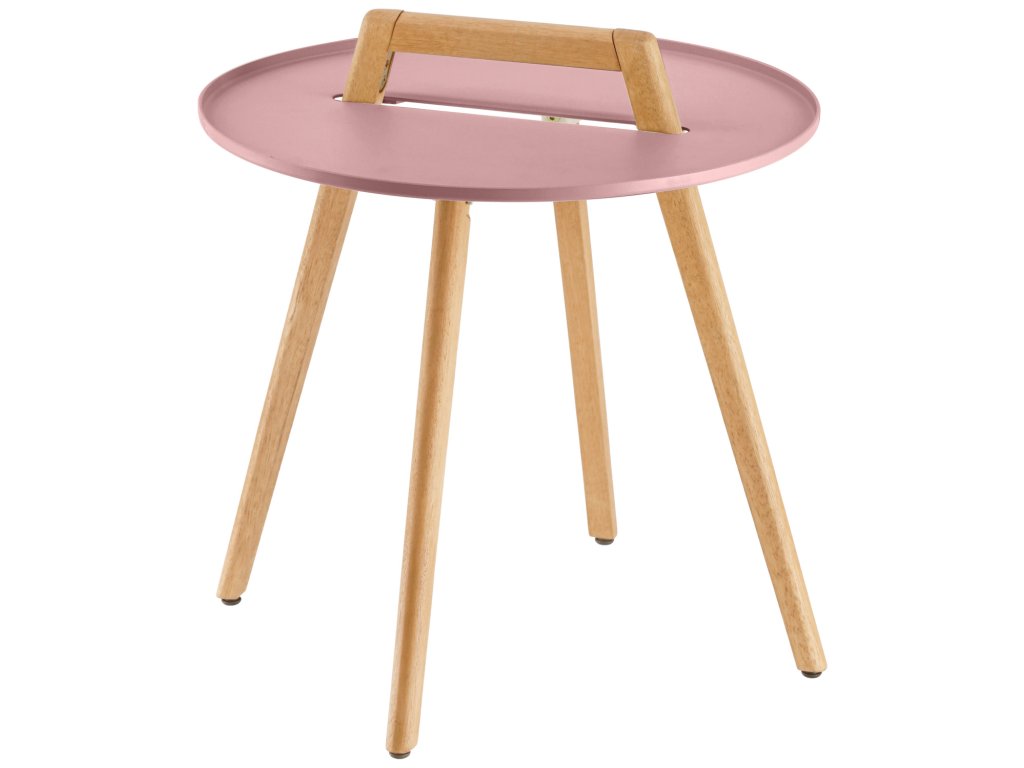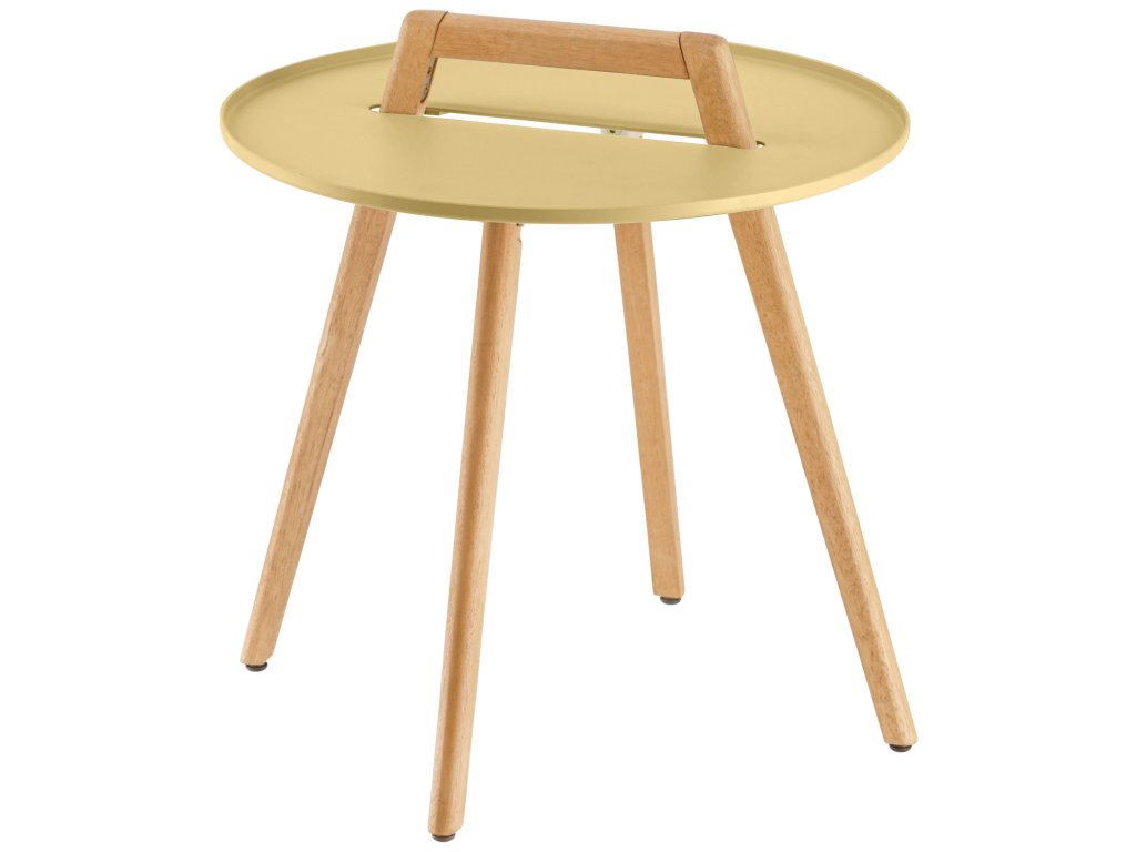Príručný stolík Gimani s lakovanými eukalyptovými nohami a vrchnou doskou z práškovo lakovaného hliníka. Priemer stolovej dosky 50 cm. Vhodný na vonkajšie použitie. Dodáva sa v demontovanom stave vrátane upevňovacieho materiálu.Dodatočné parametre