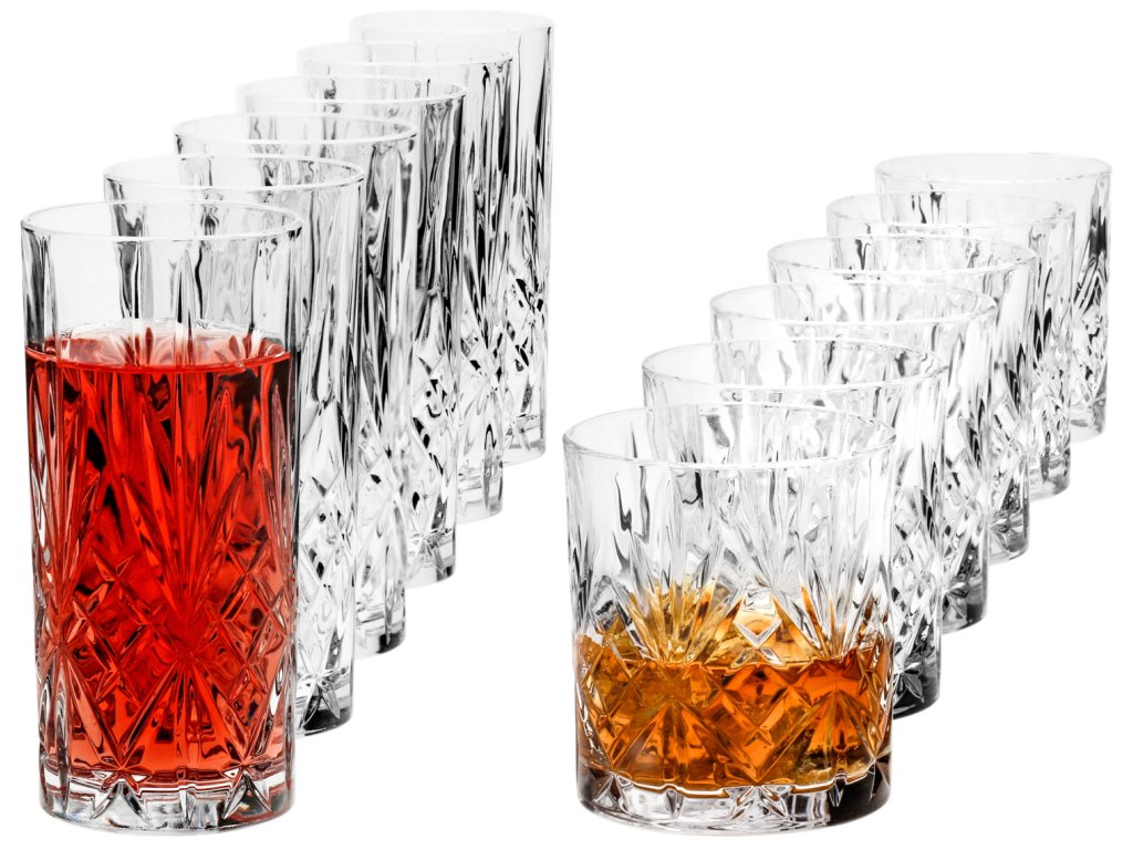 12-tlg. Set aus jeweils sechs Whisky- und Cocktailgläsern aus Kristallglas in Schliff-Optik. Spülmaschinenfest.Dodatočné parametre