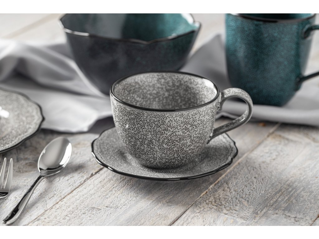 Porcelánová šálka na kávu v moderných farbách. Kombi podšálka je vhodná pre všetky veľkosti šálok. Vhodná do umývačky riadu a mikrovlnnej rúry.Dodatočné parametre