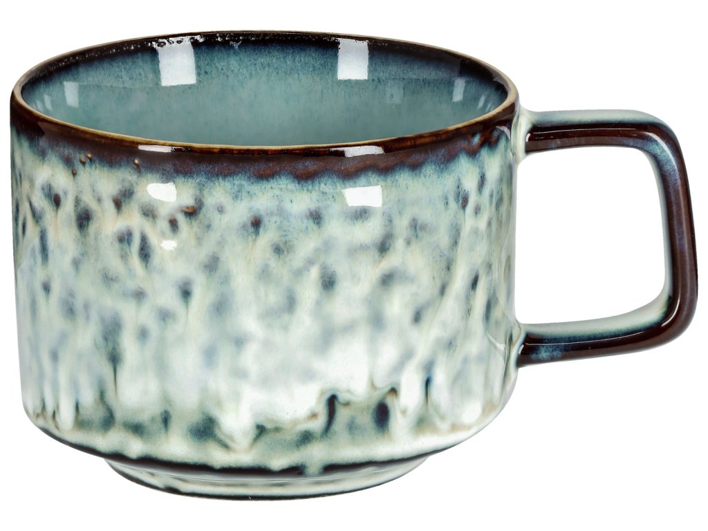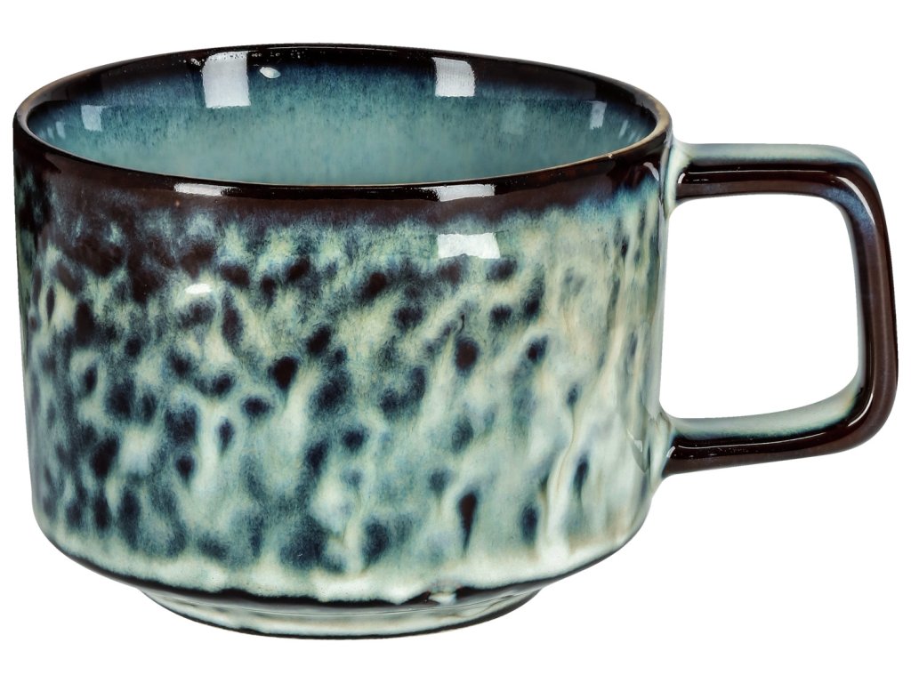 Farebná kameninová šálka na kávu v modernom dizajne. Každý kus je jedinečný. Farby sa môžu líšiť od svetlej po tmavú. Vhodná do umývačky riadu a mikrovlnnej rúry.Dodatočné parametre