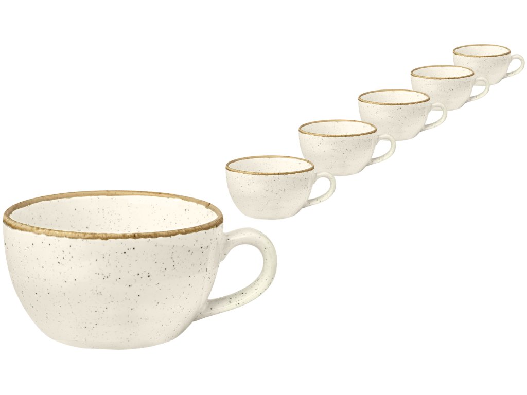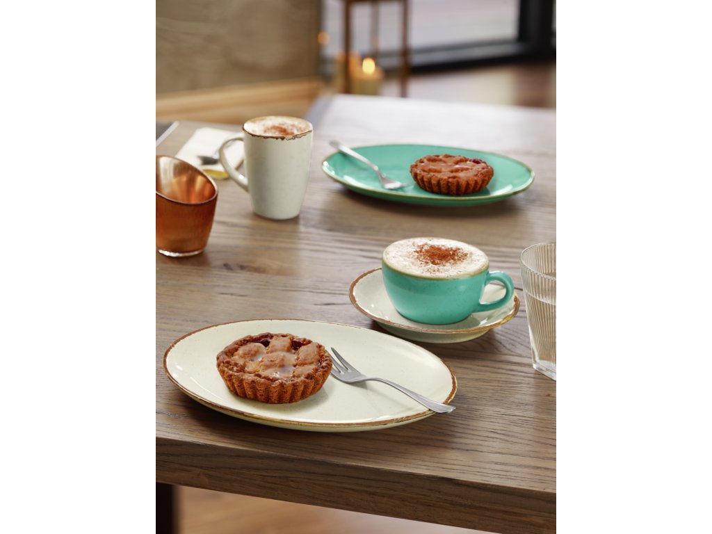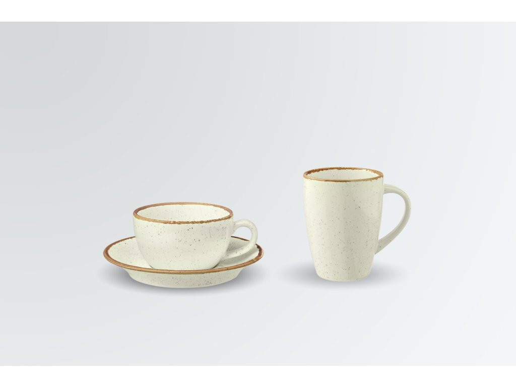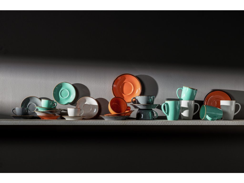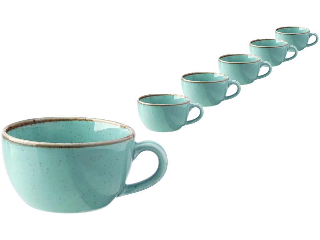 Farebná porcelánová šálka na kávu s keramickým vzhľadom. S mierne nepravidelnými okrajmi v glazúre. Vhodný do umývačky riadu a mikrovlnnej rúry.Dodatočné parametre