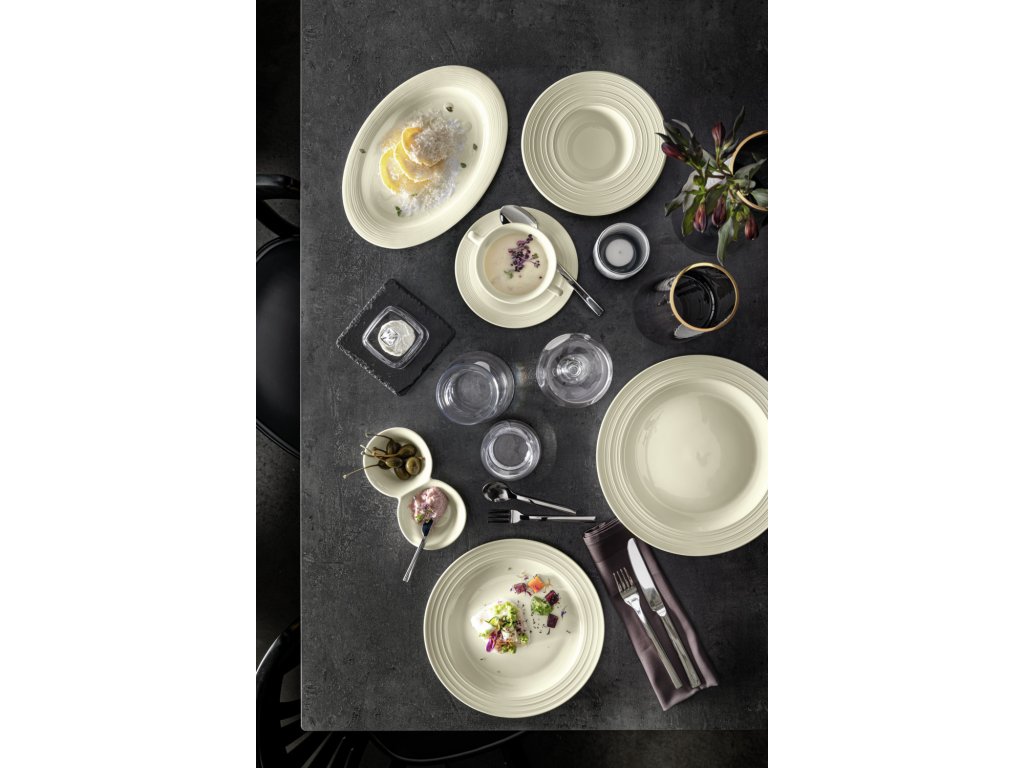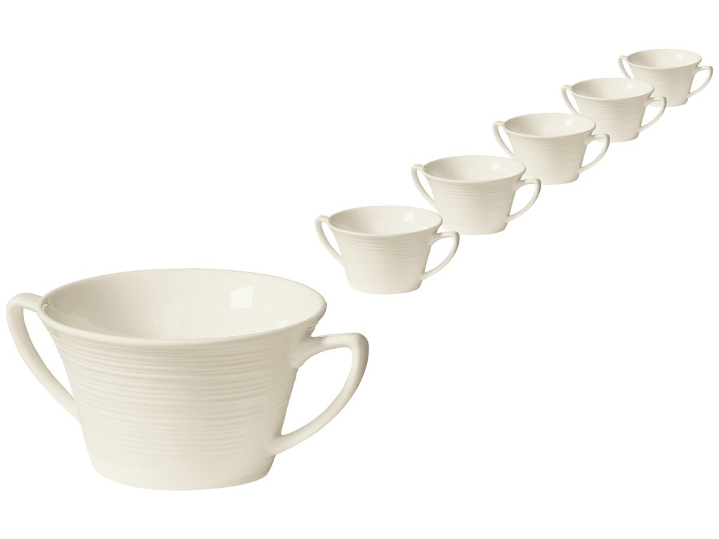 Šálka na polievku krémovej farby z Bone-China porcelánu s reliéfom. Moderný dizajn. Vysoká odolnosť. Brilantná glazúra. Vhodná do umývačky riadu a mikrovlnnej rúry.Dodatočné parametre
