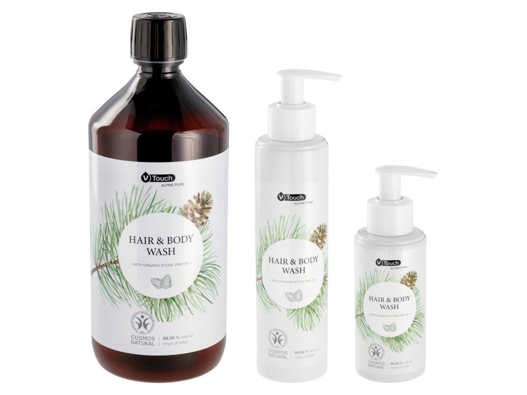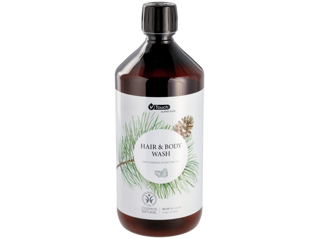 Harmonizujúca, certifikovaná prírodná kozmetika V-Touch Alpine Pure starostlivosť o vlasy a telo v jednom. Jemne čistiaci gél na vlasy a telo je vhodný pre všetky typy vlasov a pokožky. So zaručeným pravým švajčiarskym organickým olejom z kamennej borovice z certifikovaného ekologického poľnohospodárstva. Korenisto-trpká vôňa švajčiarskej kamennej borovice zaisťuje dlhotrvajúci relaxačný zážitok zo starostlivosti. Upokojujúce vlastnosti poskytujú jemnú starostlivosť o pokožku a vlasy a zanechávajú pocit sviežosti a čistoty. Dermatologicky testované a pH neutrálne! Obal je vyrobený zo 100 % recyklovaného materiálu. Obsah: 1000 ml so skrutkovacím uzáverom.Dodatočné parametre