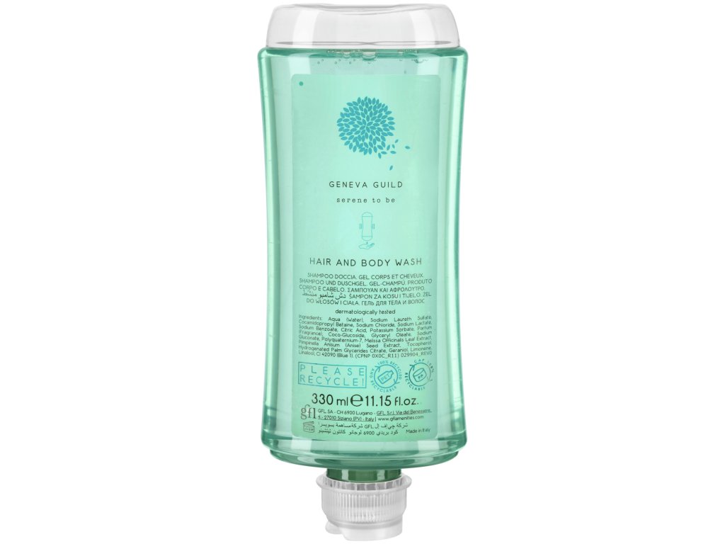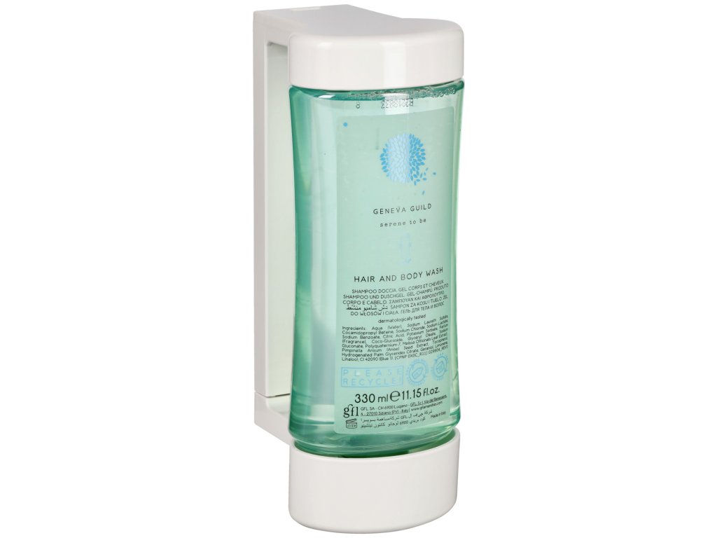 Jemný, kombinovaný šampón na vlasy a sprchový gél Geneva Guild. Výrobok starostlivosti dva v jednom, ktorý patrí do svojej triedy. Jemne čistiaci šampón a sprchový gél je vhodný pre všetky typy vlasov a pokožky. Vynikajúce vonné nuansy zabezpečujú svieži a hygienický pocit. Obohatený o výťažky z organického zeleného anízu a medovky. Dermatologicky testované a pH neutrálne! Recyklovateľné balenie. Obsah: 330 ml fľaša s dávkovačom vyrobená z recyklovaného plastu. Objednajte si zodpovedajúci držiak samostatne.Dodatočné parametre