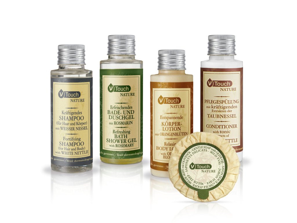 Voňavý šampón a sprchový gél dva v jednom V-Touch Nature rýchlo a dôkladne čistí a ošetruje pokožku celého tela aj vlasy. Obsahuje vysokokvalitný výťažok z bielej žihľavy a šetrne a dôkladne čistí všetky typy vlasov a pokožky. Zároveň vyžaruje podmanivú a revitalizačnú vôňu citrónu, bergamotu, bazalky, mäty, konvalinky, pižma a pačuli. Dermatologicky testované a pH neutrálne. Starostlivosť dva v jednom sa dodáva v priehľadných 40 ml fľaštičkách so skrutkovacím uzáverom.Dodatočné parametre