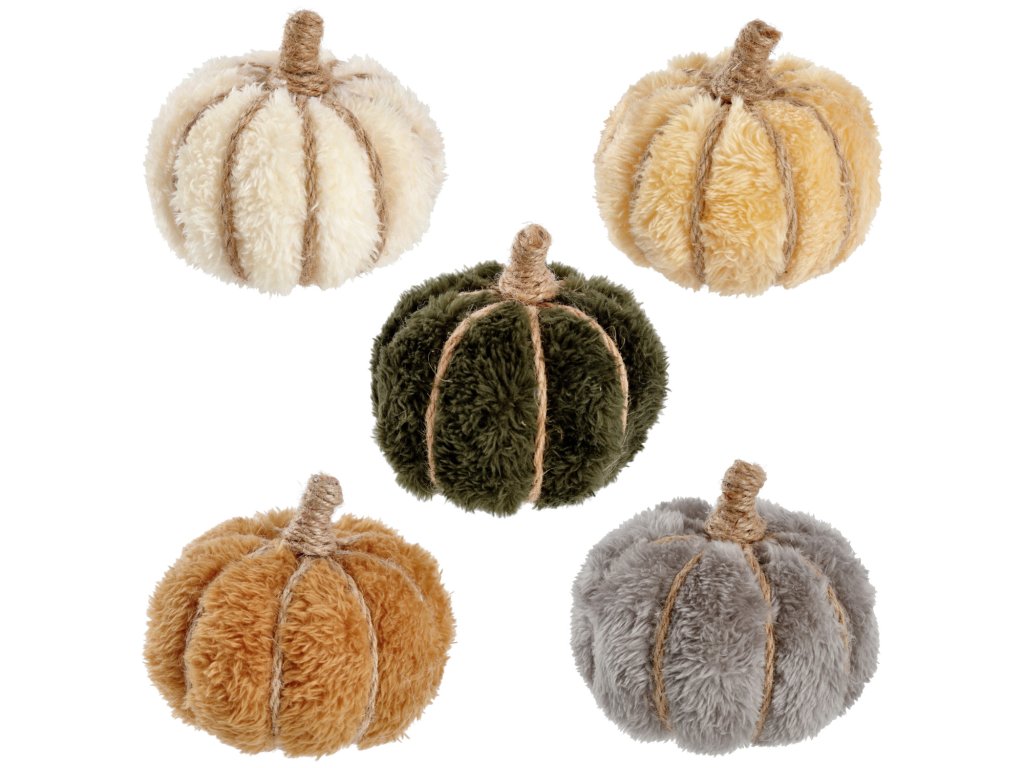Dekoračných set z piatich malých plstených tekvíc: béžová, žltá, terakotová, sivá a tmavozelená.Dodatočné parametre