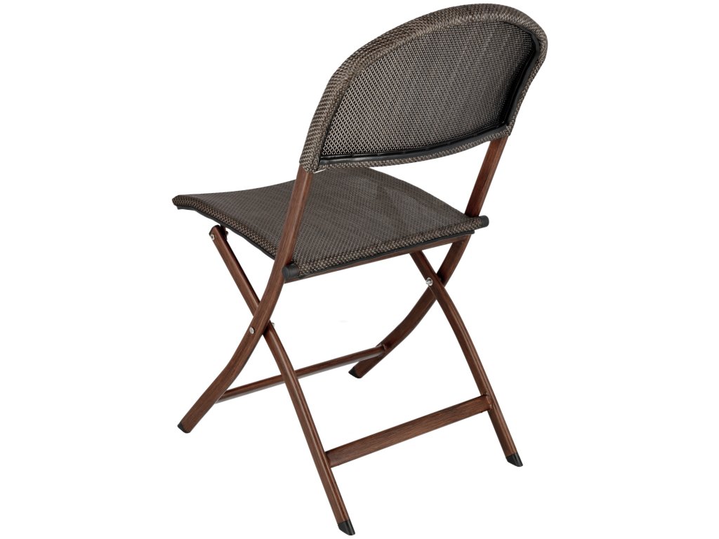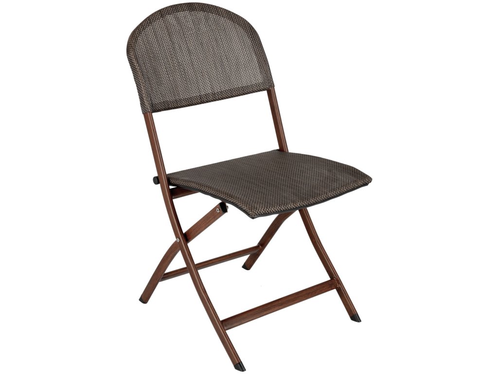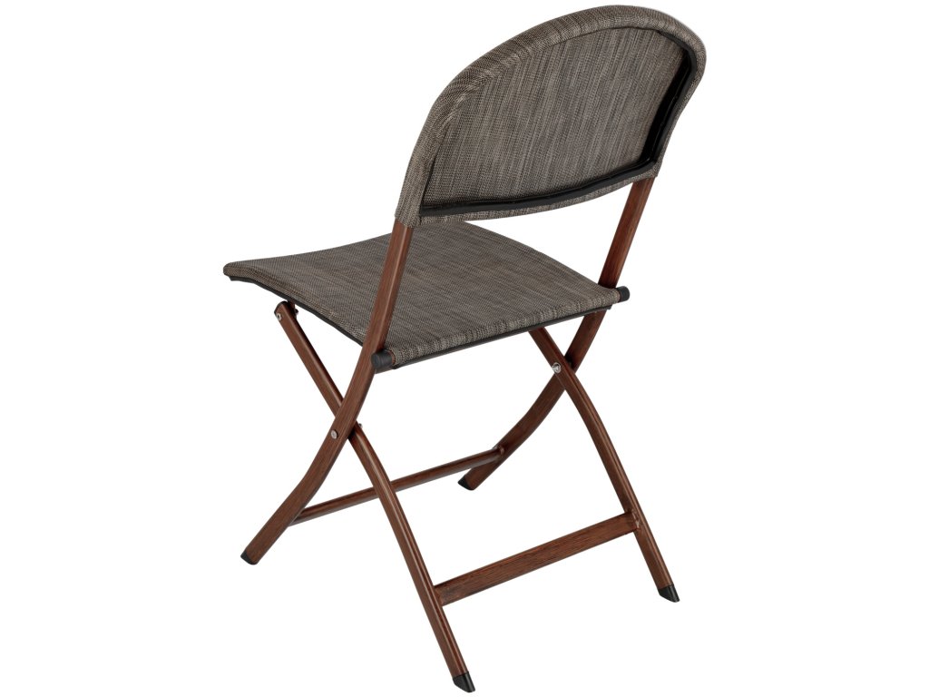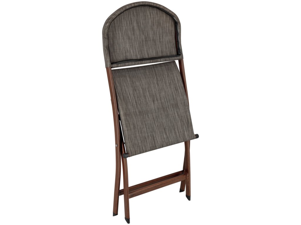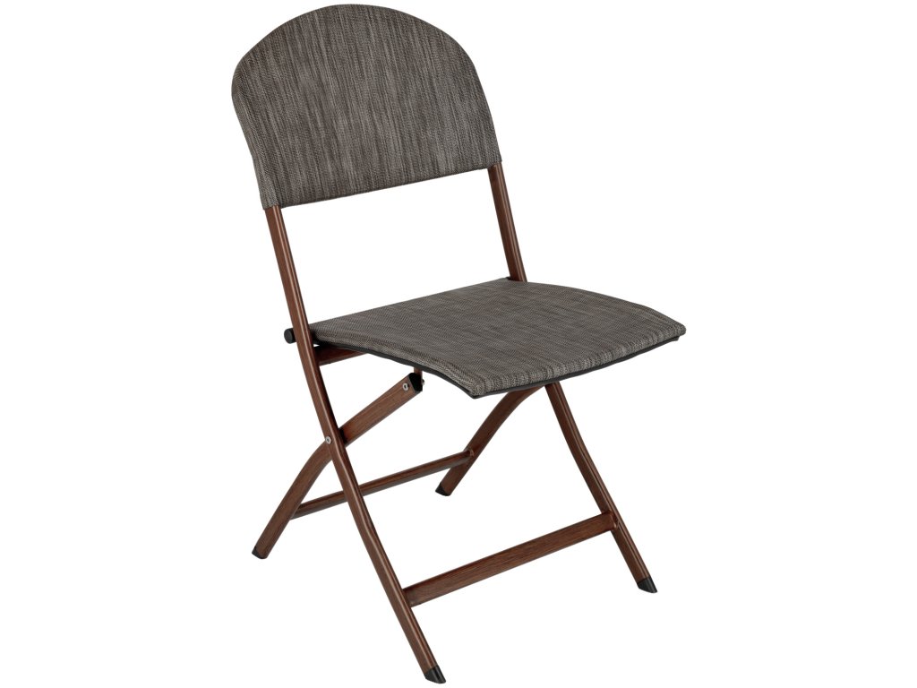 Moderná skladacia stolička z ocele s práškovou povrchovou úpravou a sedadlo s plastovou textíliou. S plastovými klzákmi na nohách stoličky. Skladacia, odolná voči poveternostným vplyvom a UV žiareniu. Rozmery v zloženom stave: 45x14x100 cm (ŠxHxV). Vhodné na vonkajšie použitie. Dodáva sa v zmontovanom stave. Objednajte si zároveň zodpovedajúce stoličky z tejto série alebo stôl.Dodatočné parametre