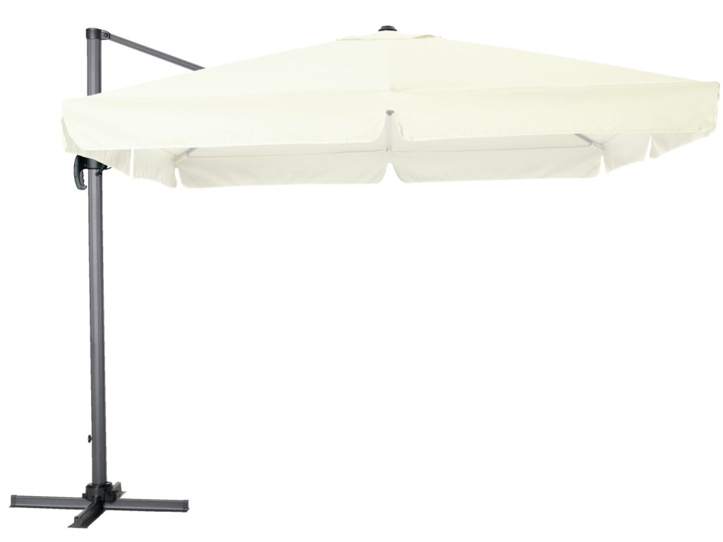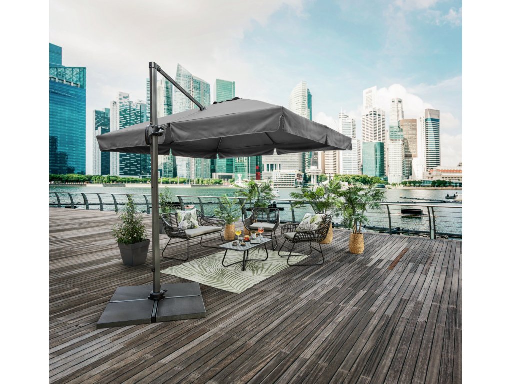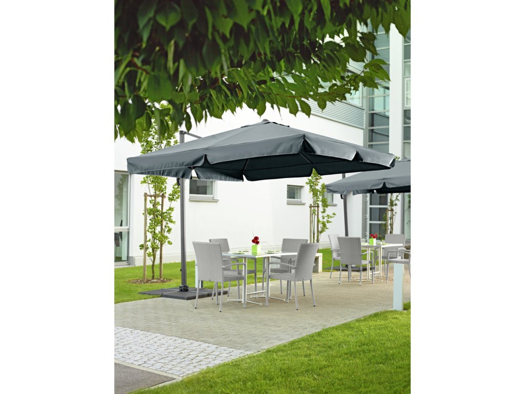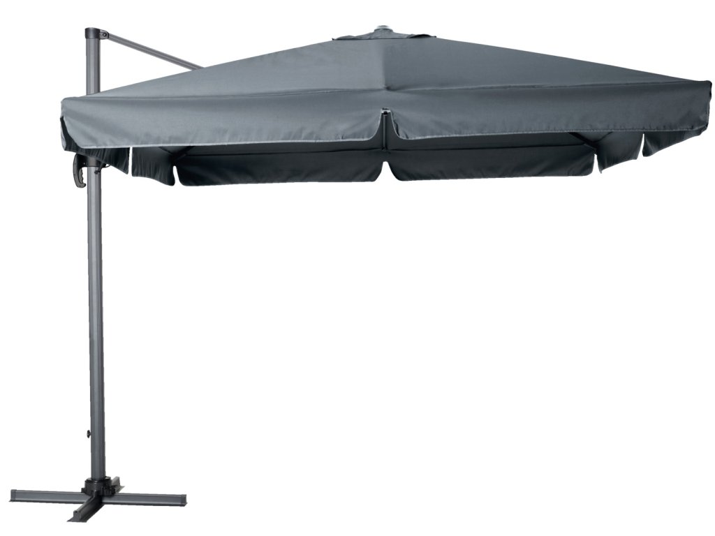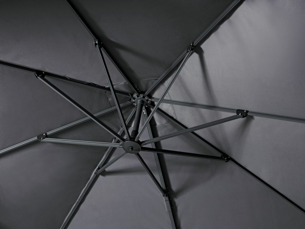 Prvotriedne a kvalitné slnečníky. Konštrukcia je z opráškovaného hliníka. Celý slnečník je odolný voči UV-žiareniu, látka na stupnici svetelnej stálosti zodpovedá číslu 6. Nepremokavá strešná plocha sa dá pomocou páky otočiť o 360°. Jednoduché roztváranie zabezpečuje kľuka. Pri silnom vetre, prosím, nechajte slnečník zložený. Doručíme aj s ochranným púzdrom a stojanom. Upevňujú sa na dlaždice vo veľkosti od 40x40 cm do 50x50 (nie sú zahrnuté v balení). Slnečník doručíme zmontovaný, stojan je potrebné zložiť. Rozmery ramien: š x h 14x24 mm! Základný stĺp: 7x5 cm s hrúbkou materiálu 2 mm! UV-ochrana 50+! Konštrukcia: práškovaný hliník. Látka: 100 % polyester.Dodatočné parametre