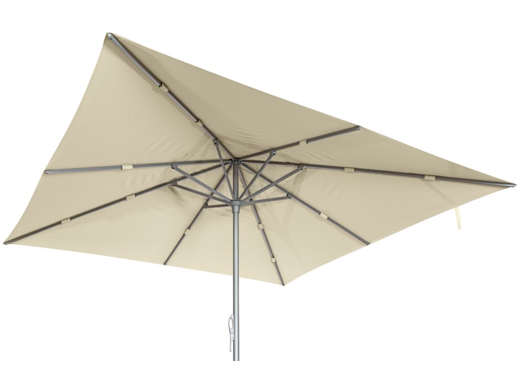 Štvorcový prémiový slnečník vyrobený z robustného hliníkového rámu s práškovou povrchovou úpravou a poťahu zo 100 % prémiového polyesteru. * Poťah z 220 g/m² * tyč slnečníka Ø 60 mm a osem zosilnených vzpier (18x28 mm) * odolný voči poveternostným vplyvom, svetlostály, ochrana proti UV žiareniu (UV žiarenie 50+), vodoodpudivý * Náhradný poťah je k dispozícii na požiadanie * Vhodná zemná zásuvka na osadenie do betónu je súčasťou dodávky * Umožňuje maximálne využitie dostupného priestoru * Inovatívny mechanizmus otvárania a zatvárania vyžaduje minimálnu námahu * Súčasťou je ochranný kryt s integrovanými tyčami z vysokokvalitného skleneného vlákna Pri silnom vetre majte slnečník zatvorený. Kompaktný dizajn Minimálne nároky na priestor Stoly sa dajú presunúť až k slnečníku Umožňuje maximálne využitie dostupného priestoru Ideálne pre kaviarne a reštaurácie s vonkajšími priestormiDodatočné parametre