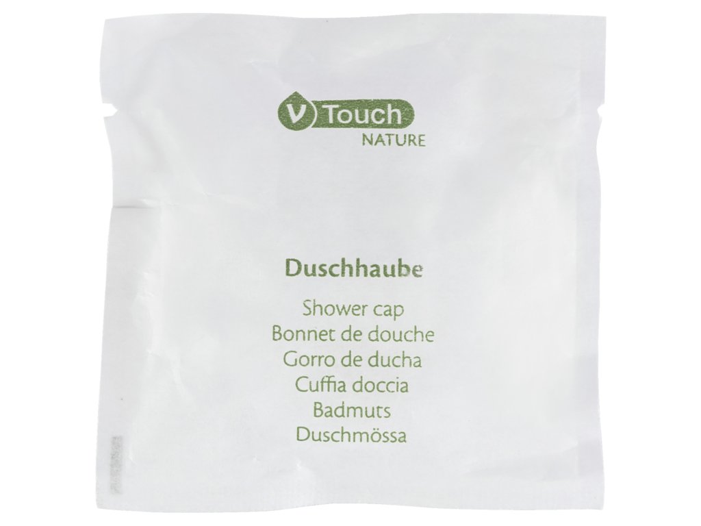 Funkčná sprchová čiapka V-Touch Nature z kukuričného škrobu s mäkkou elastickou gumičkou. Ideálna na ochranu vlasov pred vodou. Ideálna na použitie v hoteloch a penziónoch. Uni veľkosť. Sprchová čiapka je súčasťou ekologického radu hotelovej kozmetiky V-Touch Nature, ktorý je vyrobený z obnoviteľných surovín rastlinného pôvodu (kukuričný/slamový škrob). Je biologicky odbúrateľný, šetrný a udržateľný pre vás aj pre prírodu. Ďalším plusovým bodom je ekologický, jednoduchý papierový obal radu doplnkov V-Touch Nature, ktorý možno dokonale kombinovať so všetkými radmi kozmetiky V-Touch. Sprchové čiapočky V-Touch Nature dostanete v praktickom balení po 50 kusoch, pričom každá čiapočka je zabalená samostatne.Dodatočné parametre