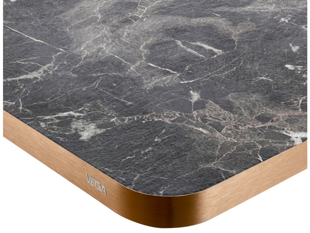 Stolová doska z kvalitného laminátu s módnym mramorovým dekorom alebo jednoduchým čiernym dekorom. Hrúbka materiálu 2,5 cm. Spĺňa požiadavky normy DIN EN 438-3:2005. 2 mm hliníkové hrany, brúsené a eloxované, chránia hrany. Robustné a odolné. Trvanlivé a odolné proti poškriabaniu. Ľahko sa čistí. Vhodné len na použitie v interiéri. Montážny materiál je súčasťou stĺpov stola. Objednajte si zároveň zodpovedajúce stolové stĺpy.Dodatočné parametre