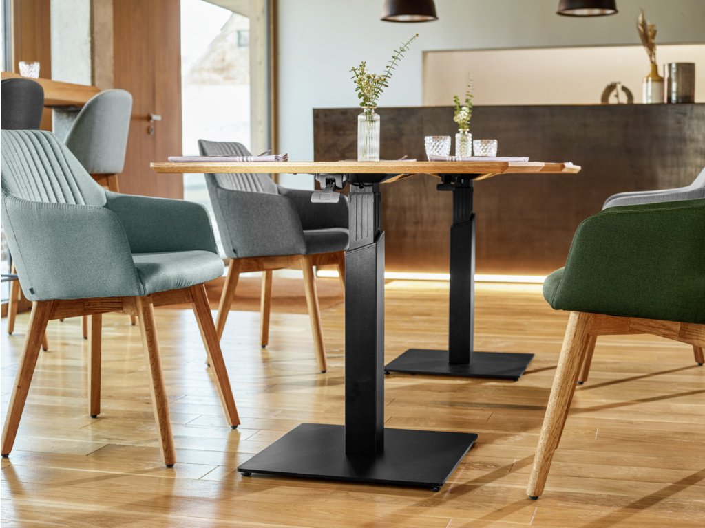 Jedna podnož – veľa možností. Výškovo nastaviteľná podnož do interiéru vyrobená z práškovanej ocele. Pneumaticky plynule výškovo nastaviteľná s integrovanou pákou. Pre stolové dosky do max. 80x80 cm alebo Ø 80 cm. Dodržujte prosím montážne pokyny a povolenú maximálnu veľkosť a hmotnosť dosky stola, aby ste zaistili bezpečné postavenie. * Nosnosť do maximálne 14 kg. Plynulý záber v akejkoľvek polohe - od 72 cm do 104 cm. Nevyžaduje pripojenie napájania ani batérie, jednoduchá manipulácia vďaka integrovanej páke. Zaujme svojim elegantným vzhľadom a flexibilitou, vrátane klzákov chrániacich podlahu. * Nie je vhodná pre stolové dosky Lift.Dodatočné parametre