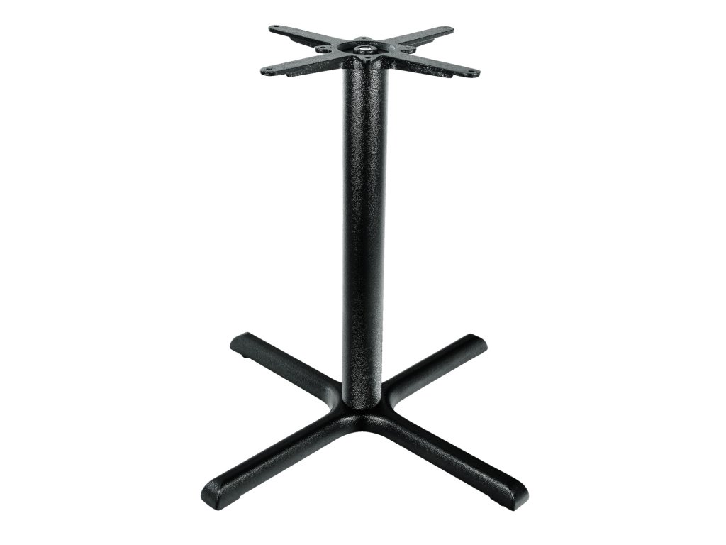 Stolová podnož s krížovou základňou z práškovo lakovanej liatiny. S patentovanou technológiou FLAT. Hydraulicky namontované podlahové klzáky stolových stĺpov sa dokonale prispôsobia nerovným podlahám. Vďaka tomu možno rýchlo a jednoducho vyrovnať výšku viacerých stolov a jednoducho ich spojiť. Potom sa automaticky zaistia na svojom mieste. Jednoduché čistenie. Vhodné na použitie v interiéri. Dodáva sa v demontovanom stave. Jednoduchá montáž. Vrátane upevňovacieho materiálu pre stolové dosky. Prípustná celková hmotnosť stolovej dosky: maximálne 20 kg. Vezmite prosím na vedomie požiadavky na veľkosť stolovej dosky, aby sa zabezpečila stabilita robustnej základne.Dodatočné parametre