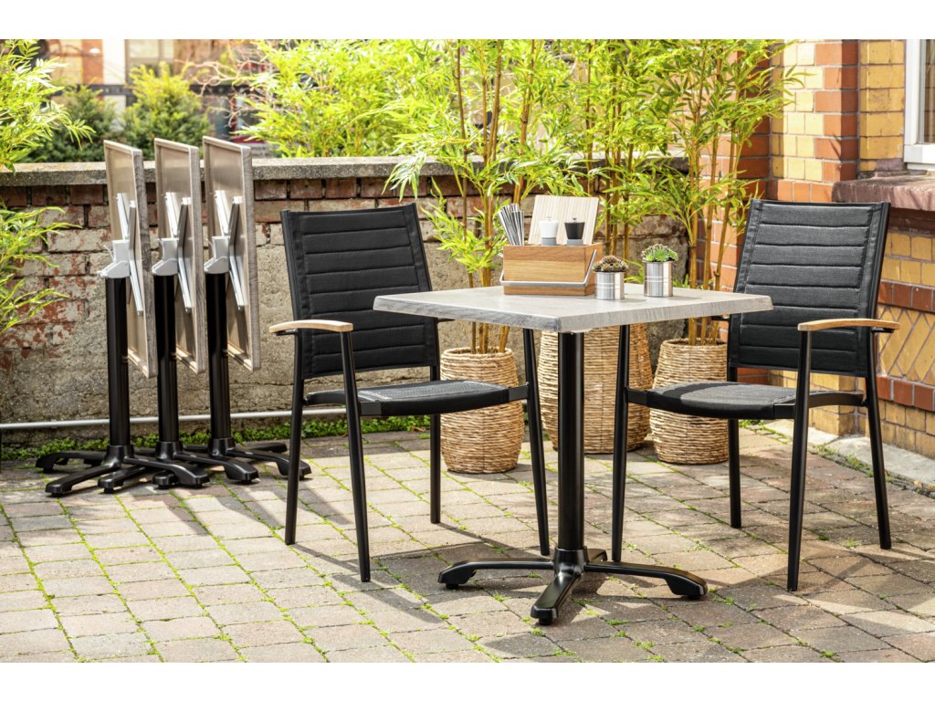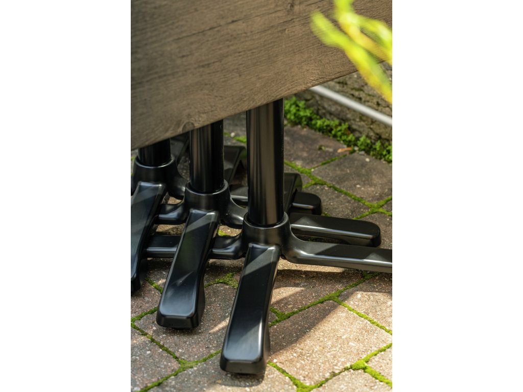 Stolová podnož z robustného kovu odolného voči poveternostným vplyvom na vyrovnanie a stabilizáciu stolov. Patentovaná technológia FLAT zabraňuje kolísaniu stola. Hydraulicky namontované podlahové klzáky sa prispôsobia nerovným povrchom. Jednoduchá stabilizácia a nastavenie výšky. Skladací a dá sa sklopiť do strán. Úspora miesta pri skladovaní. Jednoduché čistenie. Vhodný na použitie v interiéri aj exteriéri. Prípustná celková hmotnosť stolovej dosky: maximálne 8 kg. Prosím, dbajte na požiadavky na veľkosť stolovej dosky, aby sa zabezpečila stabilita robustnej základne.Dodatočné parametre