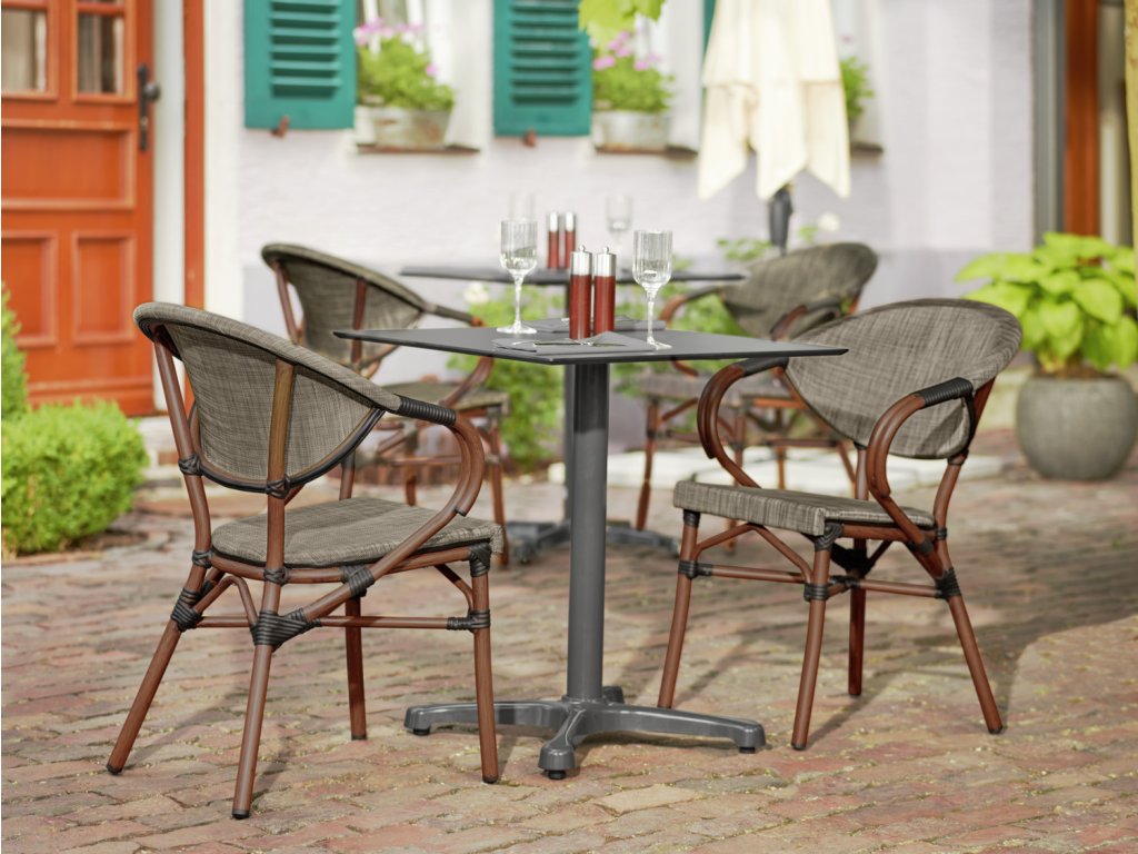 Tischsäule aus stabilem pulverbeschichtetem Aluminium und Vier-Kreuz-Fuß. Mit der innovativen FLAT-Technologie ausgestattet, bei der hydraulische Bodengleiter für einen automatischen Ausgleich von Bodenunebenheiten sorgen. Leichte Ausrichtung und selbstständige Feststellung. Pflegeleicht. Hohe Stand- und Kippsicherheit. Wetterfest und UV-beständig. Passt zu quadratischen und runden Tischplatte. Für den Innen- und Außenbereich geeignet. Lieferung erfolgt zerlegt. Einfache Montage. Inklusive Befestigungsmaterial für Tischplatten. Zulässiges Gesamtgewicht der Tischplatte: maximal 12kg. Bitte beachten Sie die Anforderungen bezüglich der Tischplattengröße, um die Standsicherheit des robusten Fußes zu gewährleisten.Dodatočné parametre