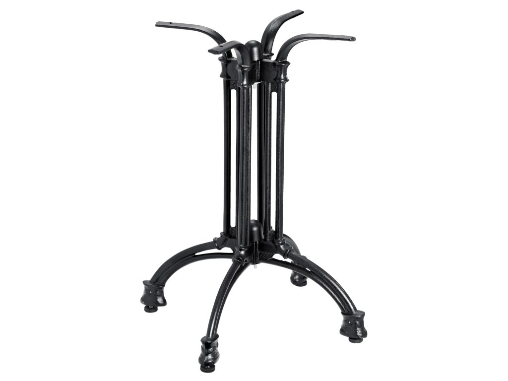 Stolový stĺp z robustného, práškovo lakovaného a liatinového stolového rámu. S nastaviteľnými klzákmi a štyrmi nohami. Vyrovnávacie skrutky vyrovnávajú nerovnosti podlahy. Ľahko sa čistí. Vhodný pre štvorcové a okrúhle stolové dosky. Vhodné na použitie v interiéri. Dodáva sa v demontovanom stave. Vrátane upevňovacieho materiálu na dosku stola. Upozorňujeme na požiadavky na veľkosť stolovej dosky, aby sa zabezpečila stabilita robustnej základne.Dodatočné parametre