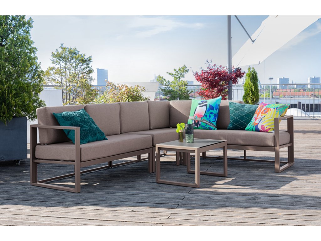 Stredový prvok zodpovedajúci sérii Sereno. Hliníkový rám s práškovou povrchovou úpravou, vankúše sedadla a operadla z olefínovej tkaniny (100 % polypropylén). Odolný voči svetlu a poveternostným vplyvom. Jednoduché spojenie jednotlivých prvkov pomocou dodaných spojok.Dodatočné parametre