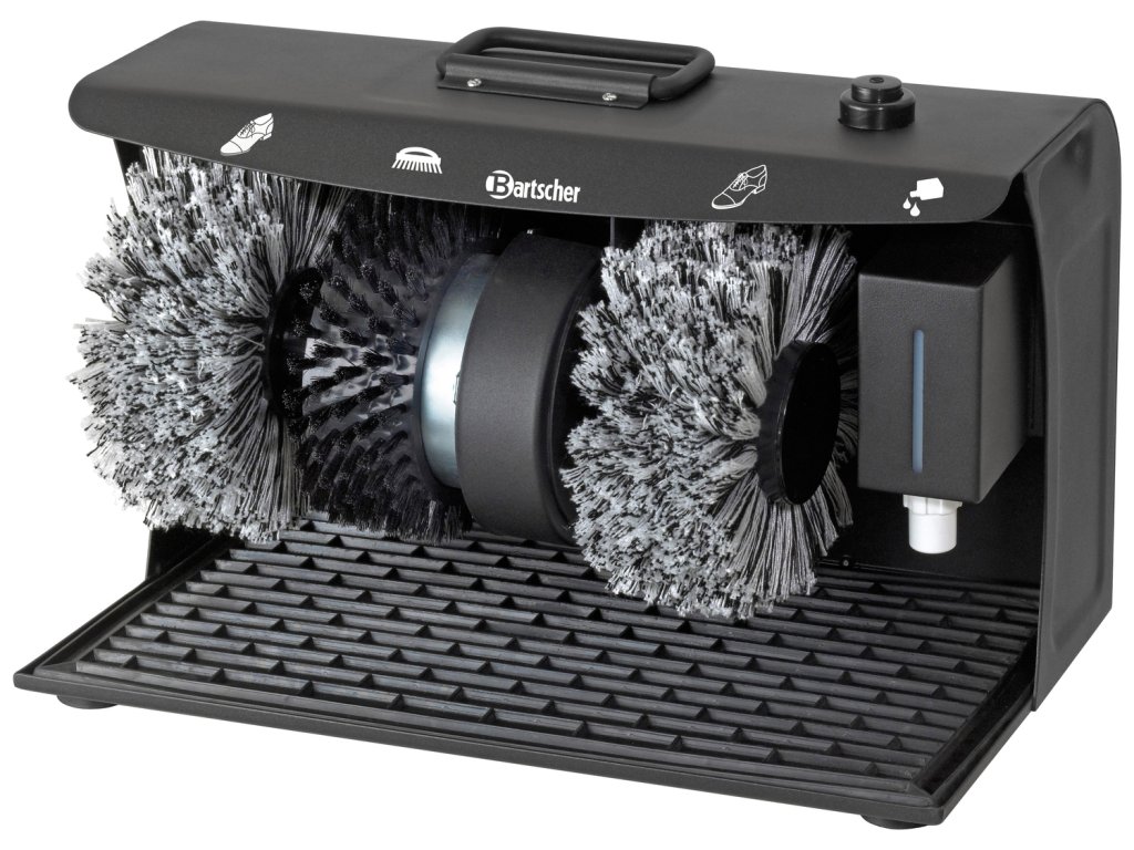 Tento stroj na čistenie obuvi je vybavený zabudovaným dávkovačom krému na obuv, čistiacou a leštiacou kefou. Prevádzka stlačením tlačidla - s tromi ticho pracujúcimi rotačnými kefami, 2 leštiace kefy z polyesteru, na svetlú alebo tmavú obuv, 1 čistiaca kefa - na hrubé nečistoty Dávkovač krému na topánky s guľovým ventilom na 100 ml tekutého krému na topánky, nenaplnený 1 rukoväť na prenášanie na hornej strane prístroja, 2 zapustené rukoväte na boku Podložka na zachytávanie nečistôt na jednoduché čistenie Bezúdržbový motor 20 W / 230 V V Vrátane lievika - na jednoduché naplnenie dávkovača krému na topánkyDodatočné parametre