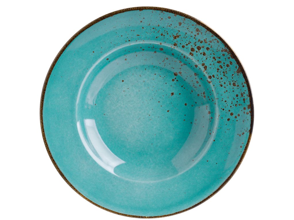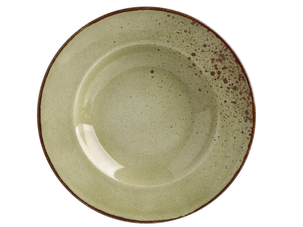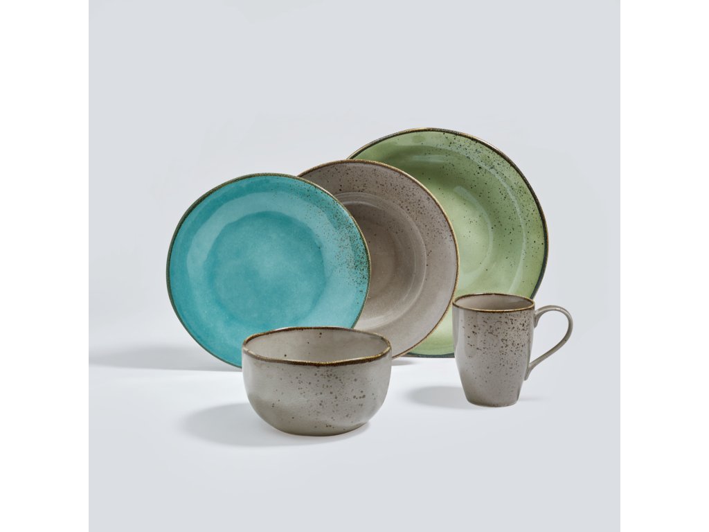 Farebný kameninový tanier s nepravidelnými okrajmi a škvrnami. Každý kus je jedinečný. Vhodný do umývačky riadu a mikrovlnnej rúry.Dodatočné parametre