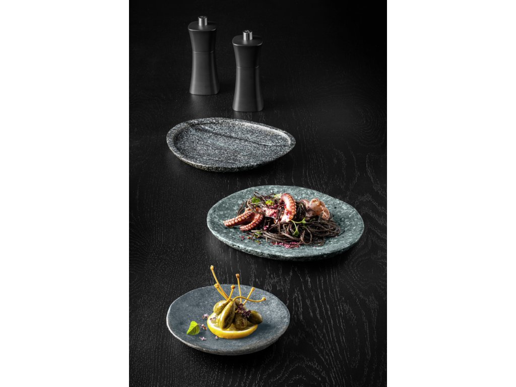 Teller mit Rand aus Naturstein. Innenseite mit Lasur. Form, Größe und Farbe können abweichen, da es sich um ein Naturprodukt handelt. Jedes Teil ist ein Unikat. Der Einsatzbereich ist von -20 °C bis +200 °C. Nicht mikrowellengeeignet und nicht backofengeeignet. Säureempfindlich. Nicht spülmaschinengeeignet. Feucht abwischbar.Dodatočné parametre