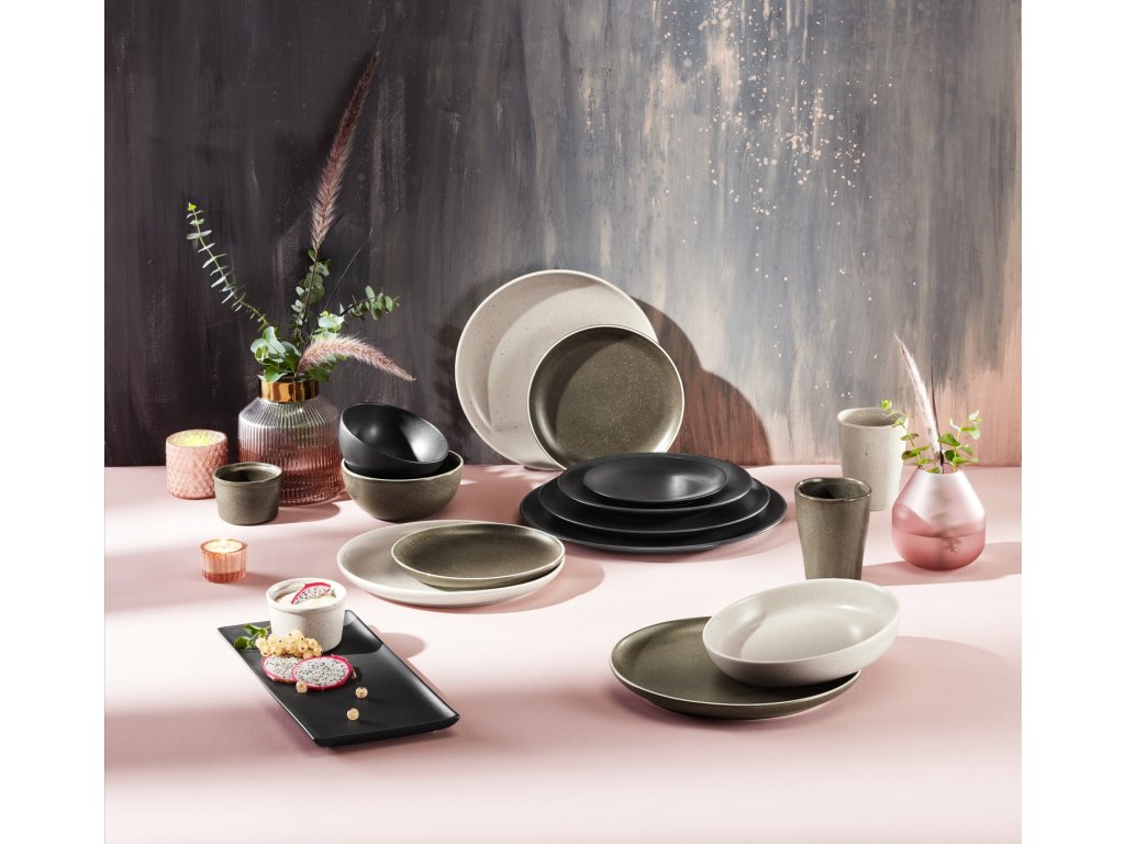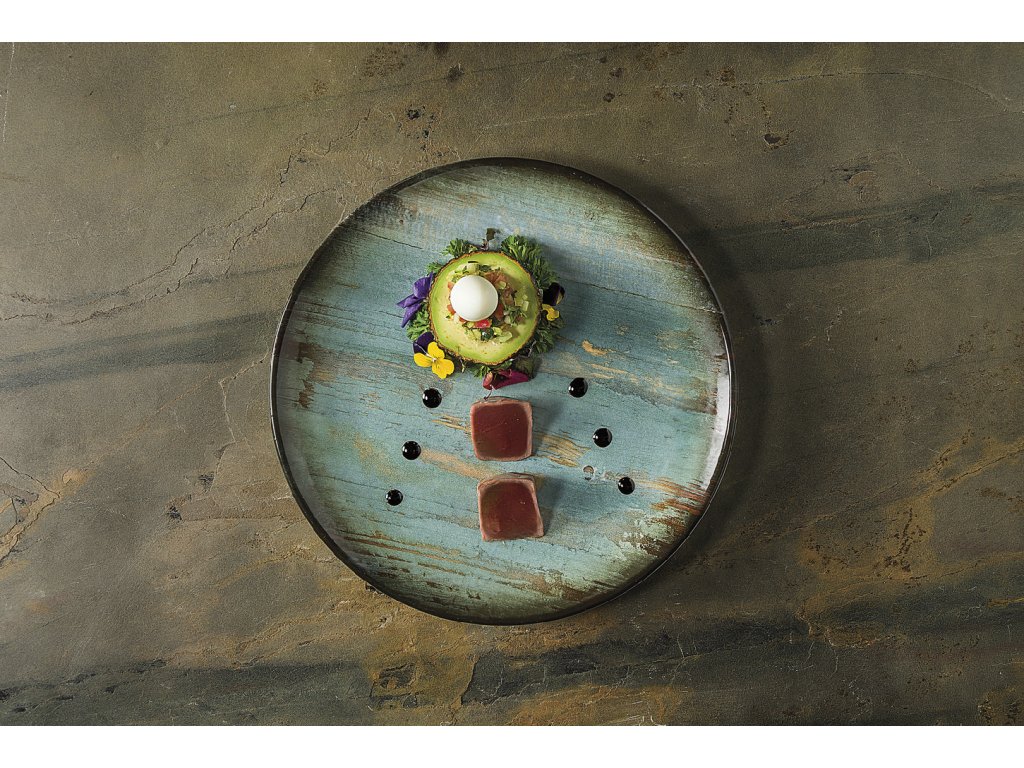 Farebný porcelánový tanier s moderným dreveným vzhľadom. Vyzerá ako ručne vyrobený. Bez okraja. Vhodný do umývačky riadu a mikrovlnnej rúry.Dodatočné parametre