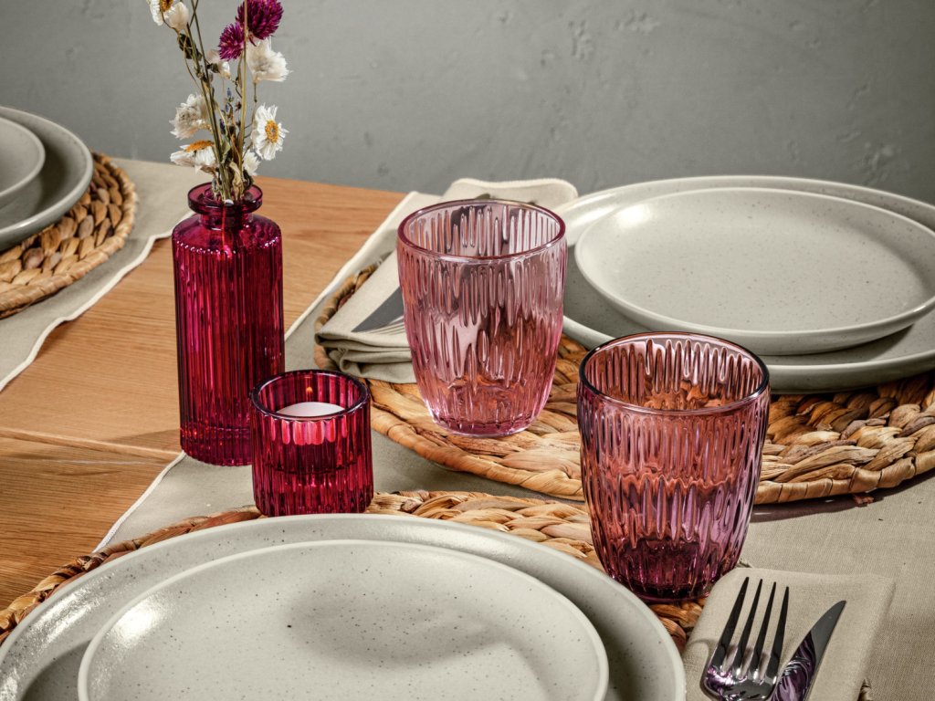 Farebné poháre na vodu so vzorom z vonkajšej strany.Dodatočné parametre