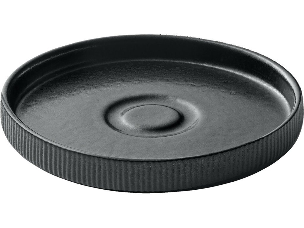 Eine Untertasse aus schwarzem Steingut mit Relief und einem Durchmesser von 15 cm.Dodatočné parametre