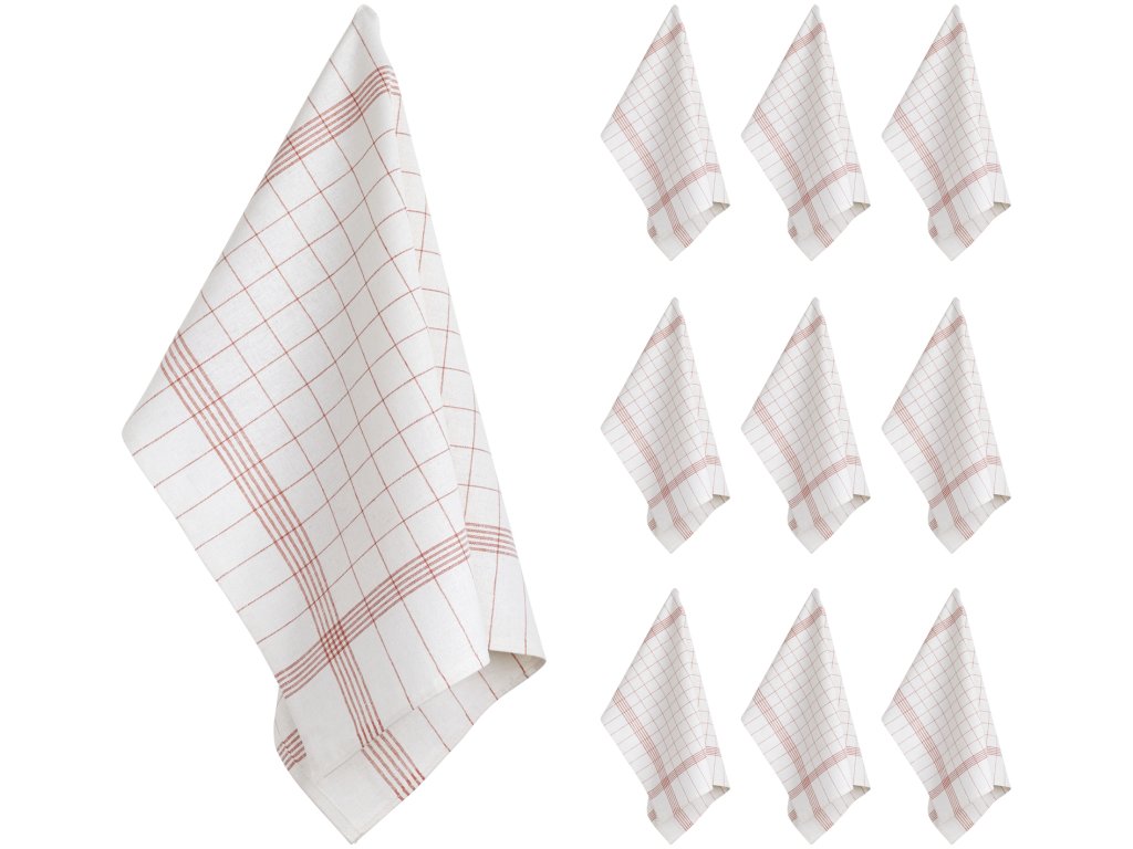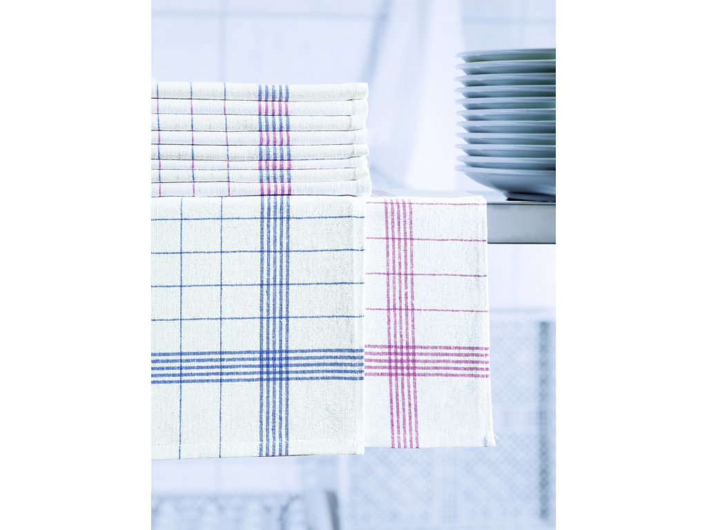 Dlhotrvácne, husto tkané a savé. V 10 ks balení obsahujúcom 5 červených a 5 modrých utierok. 100 % bavlna. Hmotnosť cca. 220 g/m².Dodatočné parametre
