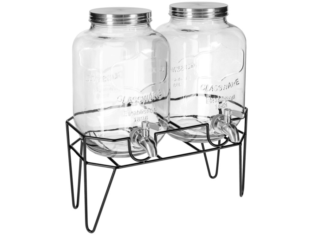 Sklenený zásobník na nápoje vo vintage štýle s kohútikom na jednoduché ovládanie. Dodáva sa s praktickým stojanom. Veľká kapacita 2x4 litre.Dodatočné parametre
