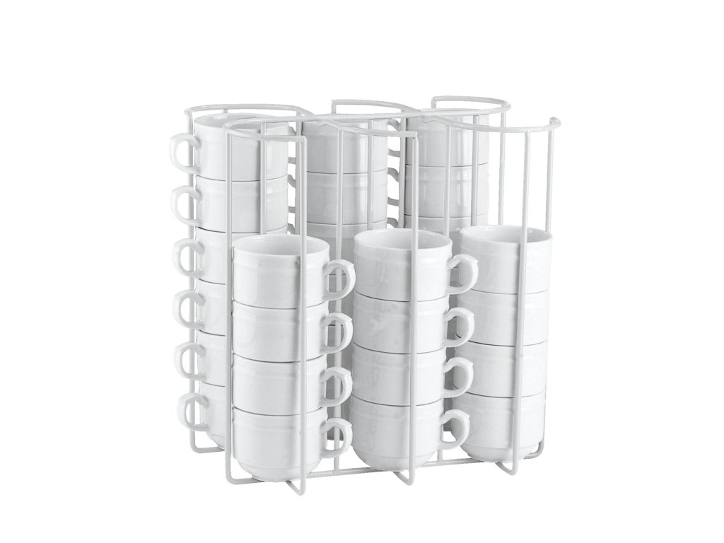 Praktický zásobník na poháre z okrúhlej ocele, potiahnutý bielym plastom. So šiestimi odkladacími rúrkami. Vhodný najmä na skladovanie, prepravu alebo párty servis / stravovanie.Dodatočné parametre