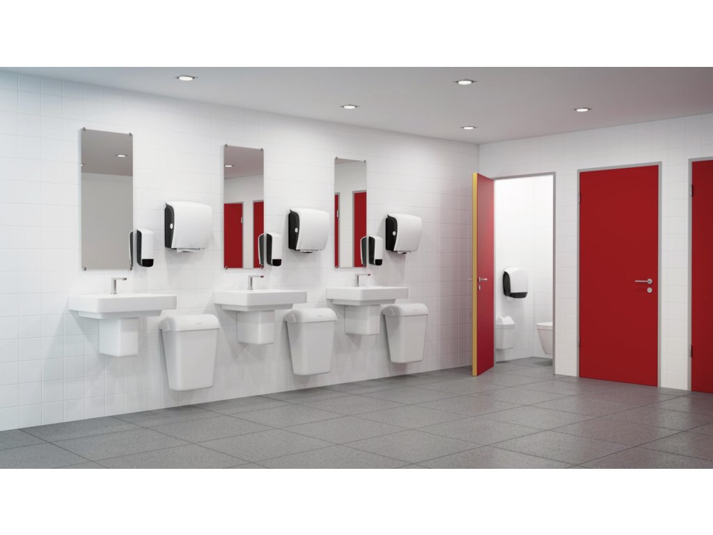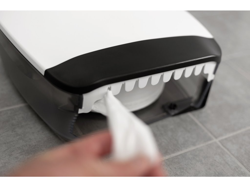 Robustný dávkovač toaletného papiera z plastu. S flexibilnou brzdou rolky. Vhodný najmä do priestorov s vysokou frekvenciou používania. Jednoduché odtrhnutie papiera vďaka odtrhávacím okrajom na prednej a bočných stranách dávkovača. Úplné využitie celej rolky vďaka držiaku rolky, ktorý sa odklopí do strany. Vďaka priehľadným stranám možno ľahko rozpoznať úroveň naplnenia papiera. Voľný výber funkcie uzamykania (s kľúčom alebo bez neho). Tieto dávkovače Katrin sú odolné voči vysokým teplotám a spĺňajú predpisy o protipožiarnej ochrane UL94 (EÚ). Vhodné na montáž na stenu, vrátane upevňovacieho materiálu. Zároveň si objednajte zodpovedajúci toaletný papier Jumbo M 300.Dodatočné parametre